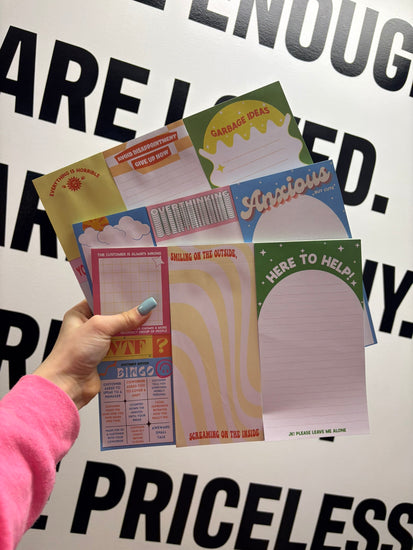 Say hello to the notepad set that’s about to fix your whole life… or at least help you fake it better. This bundle has five different notepads, each designed for a different version of you. Lists, reminders, spirals, customer service complaints drafted but never sent, anxiety brain dumps, demotivational pep talks… it’s all covered. Each pad comes with 50 sheets, so you have plenty of space to get it all out.