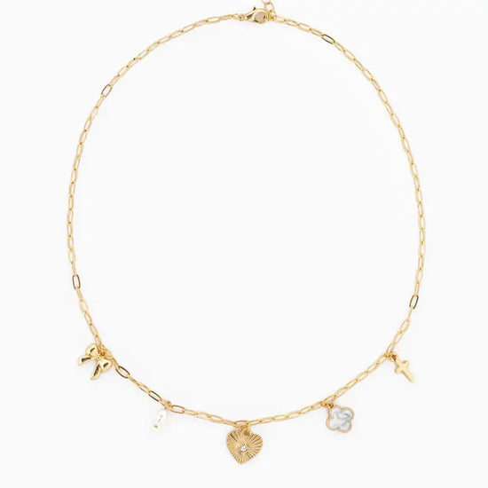 Sunburst Heart Mixed Charm Necklace